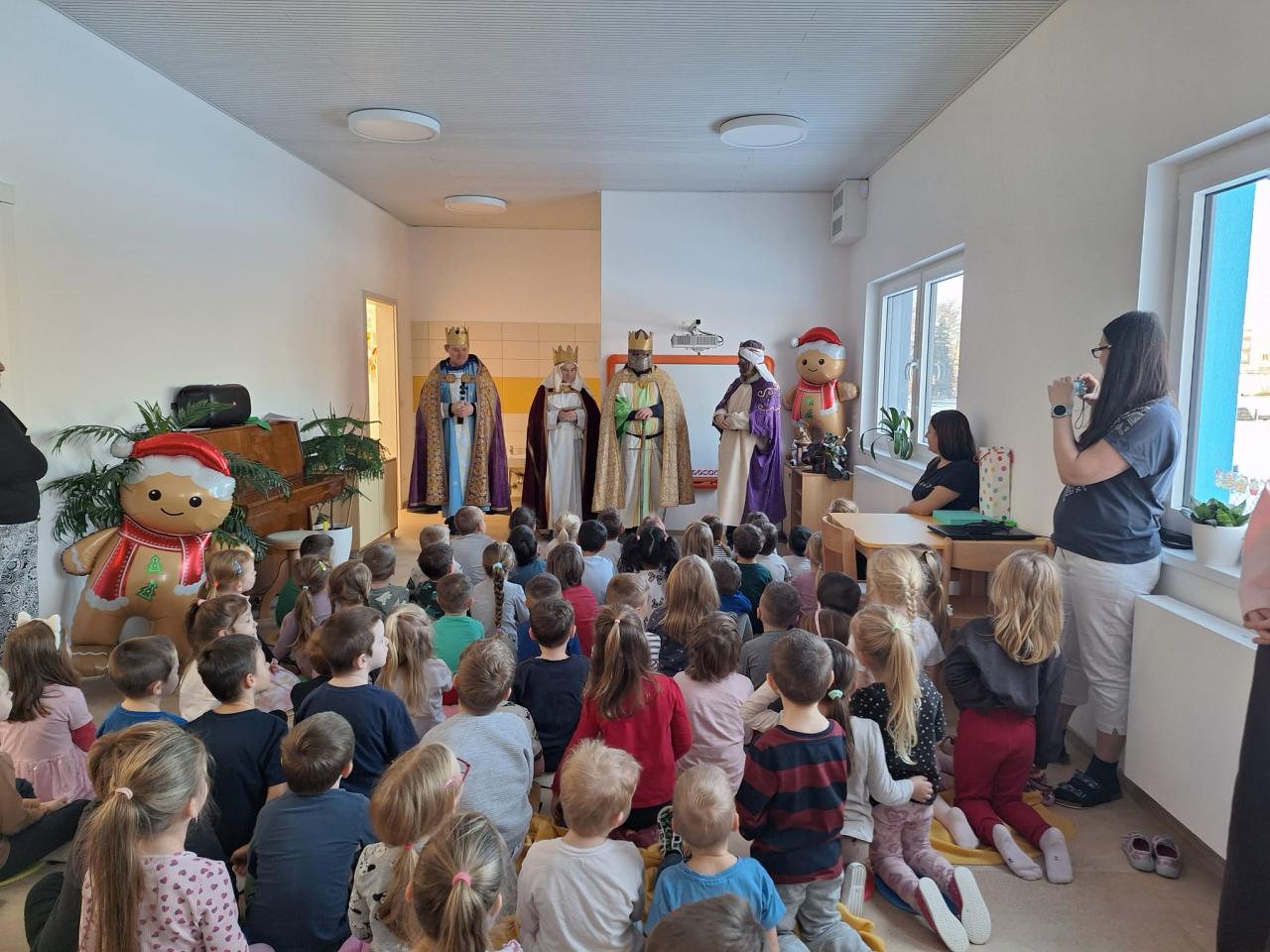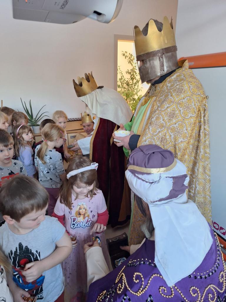 Na oplátku dostali od dětí příspěvek na charitativní Tříkrálovou sbírku. Moc děkujeme zastupiteli Ivo Garayovi za organizaci celé akce a lidem z farnosti Nýřany, včetně pana faráře, který za námi přišel v převleku krále Melichara:)