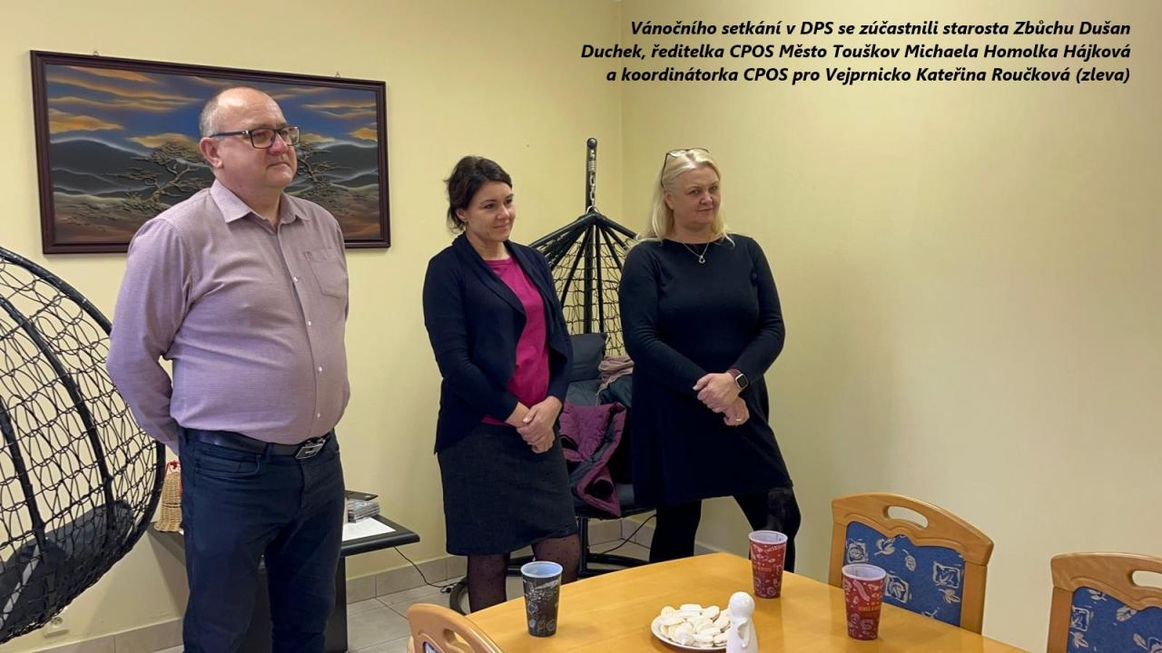 Centrum pečovatelských a ošetřovatelských služeb Město Touškov (CPOS) zajišťuje v našem DPS pečovatelské služby. Na setkání našim seniorům zazpívaly děti ze školní družiny ZŠ Zbůch pod vedením paní Ivy Špendlové. Nechybělo vánoční cukroví, svařené víno a další občerstvení, které připravily místostarostka Zbůchu Jana Zajptová, Ivana Vanková z obecního úřadu a pečovatelky z DPS.