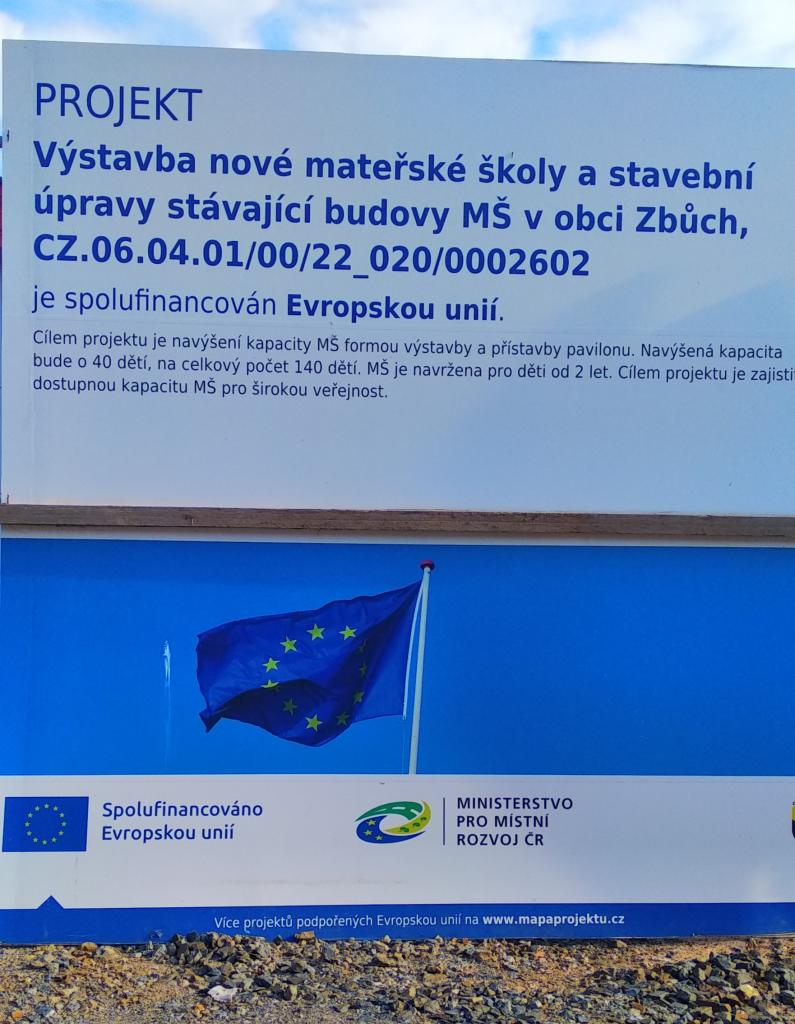 Název projektu: Výstavba nové mateřské školy a stavební úpravy stávající budovy MŠ v obci Zbůch